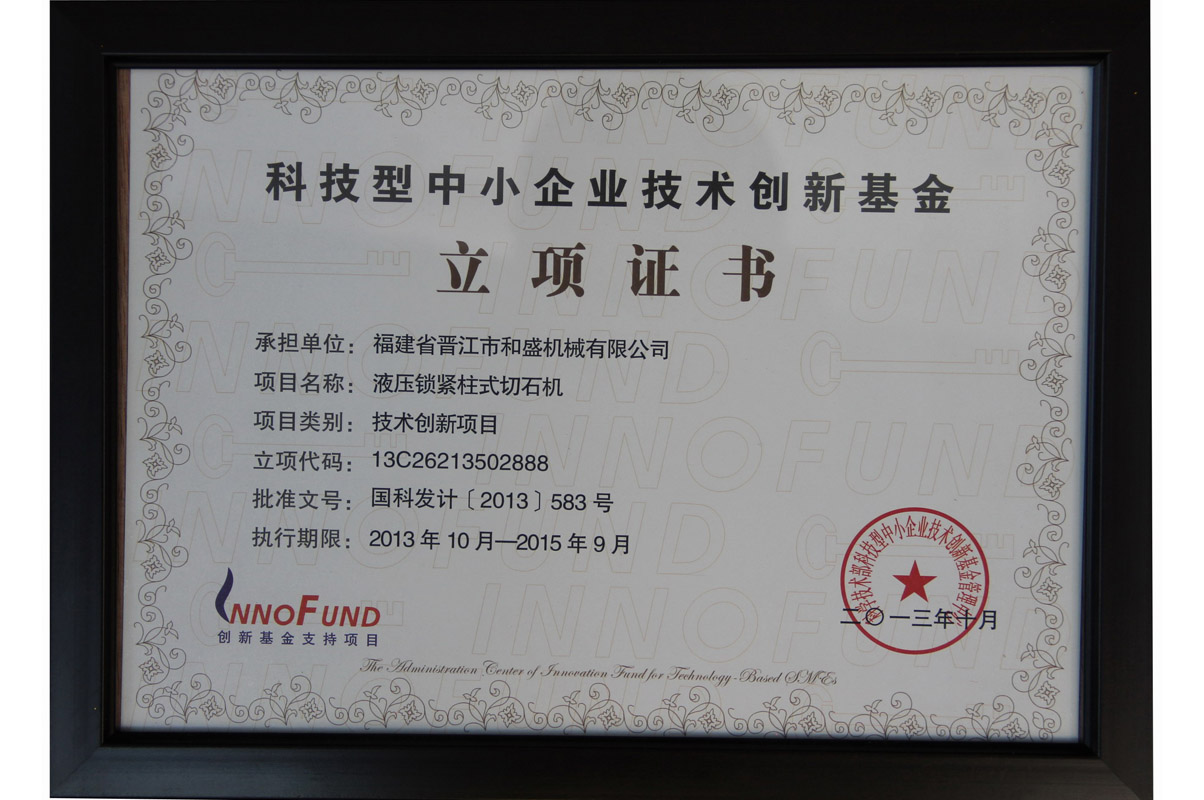 2013中小企業(yè)創(chuàng)新基金立項證書